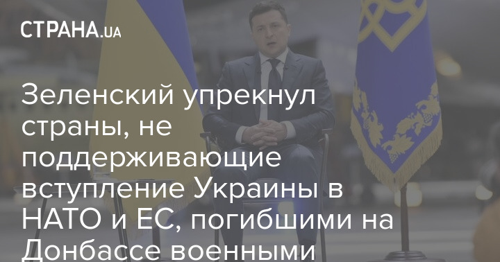 Президент Украины Владимир Зеленский упрекнул страны, которые не поддерживают вступление Украины в ЕС и НАТО и заявил, что гибель 14 тысяч украинских военнослужащих на Донбассе должна была показать им, какие у украинцев ценности.