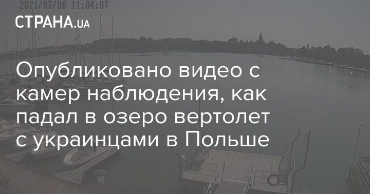 В сети интернет появилось видео падения в озеро Талты частного вертолета в Польше, на борту которого находились граждане Украины.