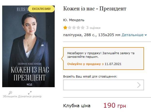 Книга мемуаров бывшего пресс-секретаря Владимира Зеленского Юлии Мендель, в которой она описала свой двухгодичный опыт работы в Офисе президента, называется "Каждый из нас - Президент".