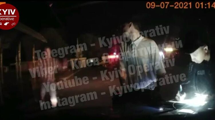 В Фастове пьяный мужчина прыгнул на служебный патрульный автомобиль. Фото: Киев Оперативный