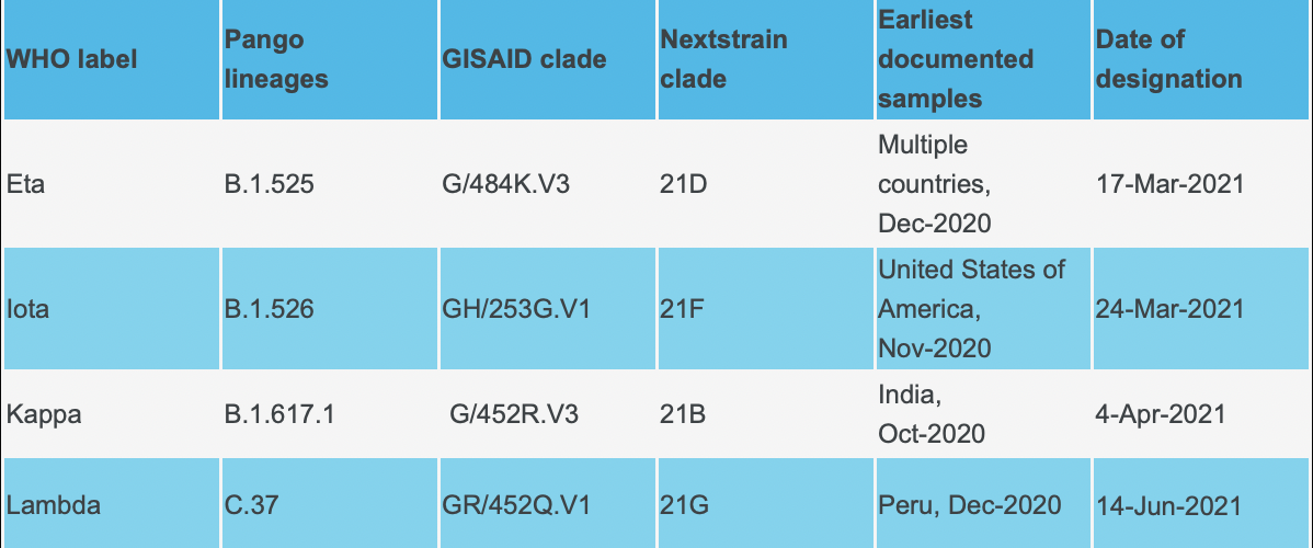 ВОЗ мониторит появление штаммов коронавируса в мире (наличие новых штаммов устанавливают в лабораториях). Для этого есть несколько списков.