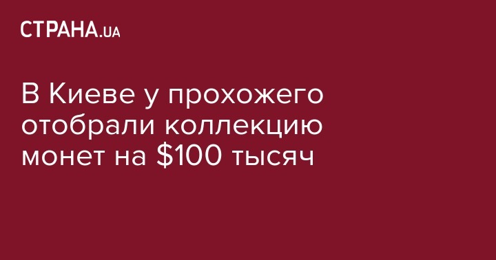 В Днепровском районе Киева уличный грабитель отобрал у прохожего пакет, в котором оказалась коллекция монет за $100 тысяч. Об этом сообщает ГУ Нацполиции Киева.