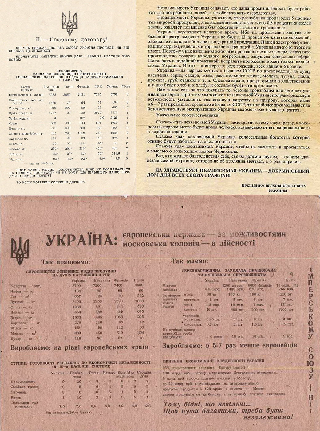 Эти настроения подогревались массированной агитацией: выпускались листовки, где говорилось, что, когда Украина перестанет "кормить" Россию и союзные республики, она заживет как в Европе.