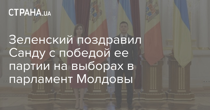 Президент Украины Владимир Зеленский поздравил президента Молдовы Майю Санду с победой ее партии "Действие и солидарность" (PAS) на парламентских выборах.
