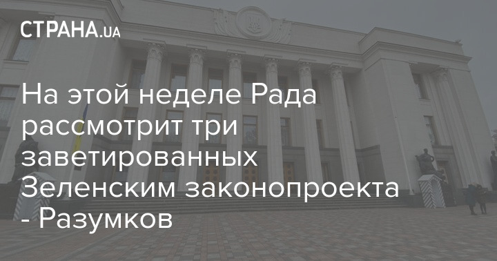 На этой неделе Рада рассмотрит три заветированных Зеленским законопроекта - Разумков