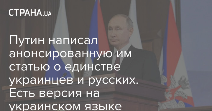Президент РФ Владимир Путин написал анонсированную им статью об историческом единстве русских и украинцев. Ее текст на русском и украинском языках доступен на сайте Кремля.