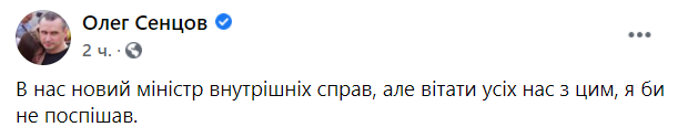 Также близкий к "соросятам" Олег Сенцов также разразился скепсисом относительно персоны нового министра. "У нас новый министр внутренних дел, но поздравлять всех нас с этим, я бы не спешил", - многозначительно написал он.