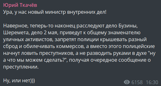 "Ура, у нас новый министр внутренних дел!