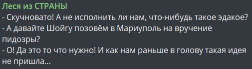 "Интересно, если Шойгу согласится приехать в Мариуполь, какой вид транспорта он предпочтёт?" - спрашивает телеграм-канал "Политика Страны".