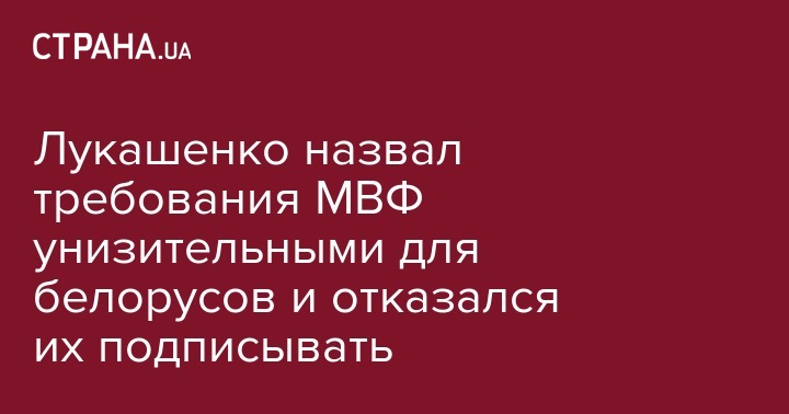 Президент Александр Лукашенко назвал предъявленные Белоруссии требования для получение кредита в $3 млрд Международного валютного фонда (МВФ) неподъемными, унизительными и несправедливыми, цитирует мнение белорусского лидера агентство БЕЛТА.
