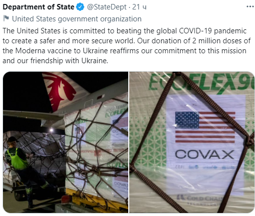 Два миллиона доз передали по глобальному механизму COVAX (гуманитарная помощь нуждающимся в вакцинах странам). Доставку вакцины поприветствовал Госдепартамент США и назвал ее "пожертвованием".