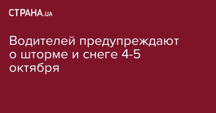 Управление безопасности дорожного движения Нацполиции Украины предупреждает водителей о резком ухудшении погодных условий 4-5 октября. Об этом говорится на сайте ведомства.