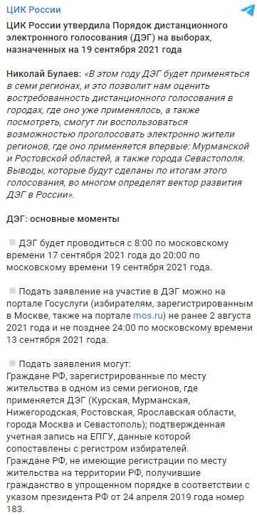 В сообщении Центризбиркома говорится, что проголосовать по интернету смогут "граждане РФ, не имеющие регистрации по месту жительства на территории РФ, получившие гражданство в упрощенном порядке в соответствии с указом президента РФ от 24 апреля 2019 года номер 183.