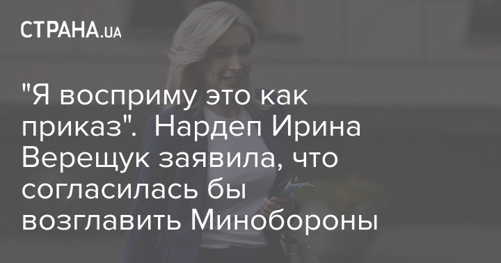 "Я это говорила уже тысячу раз: я восприму это как приказ, потому что прекрасно понимаю, работая в комитете по безопасности и обороне и внешней разведки, в чем нуждается сегодняшняя армия", - сказала нардеп.