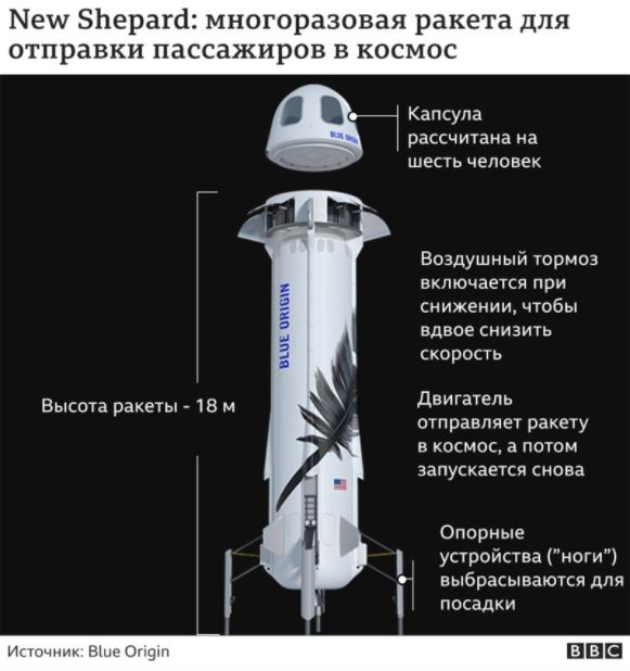 Безос и еще один миллиардер Ричард Брэнсон борются за право открыть эру туристических коммерческих полетов в космос. Компанию Blue Origin Безос  создал еще в 2000 году и с тех пор готовился к полету. Но Брэнсон совершил полет на девять дней раньше.