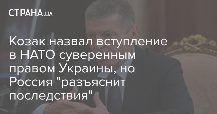 Заместитель главы администрации президента России и переговорщик от Кремля по Донбассу Дмитрий Козак считает вступление в НАТО и ЕС исключительным суверенным правом Украины