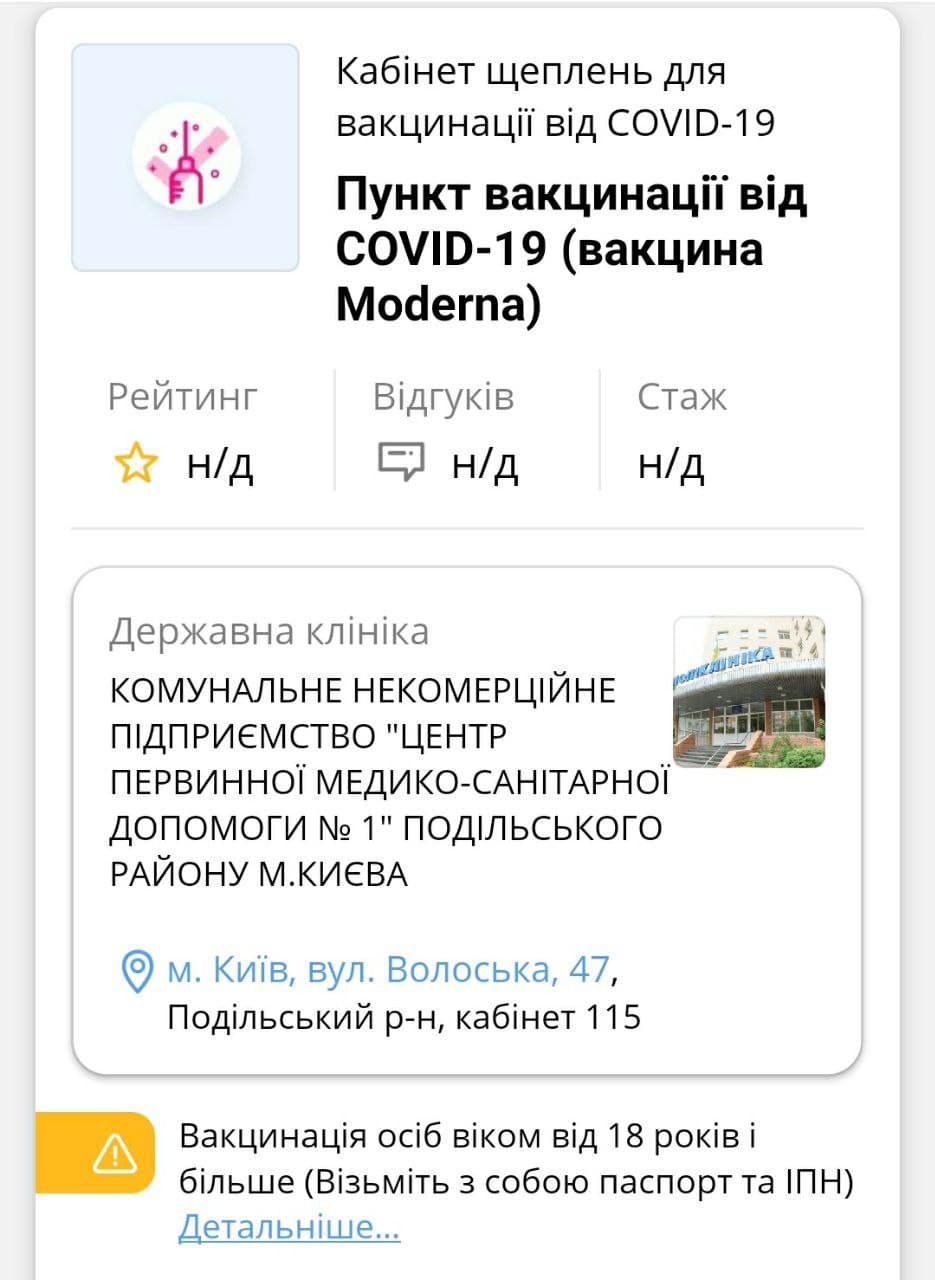 И нужно следить - у каждого кабинета вакцинации есть указание возраста. Например, на Подоле вакцинируют Pfizer, но только тех, кто старше 60-ти.