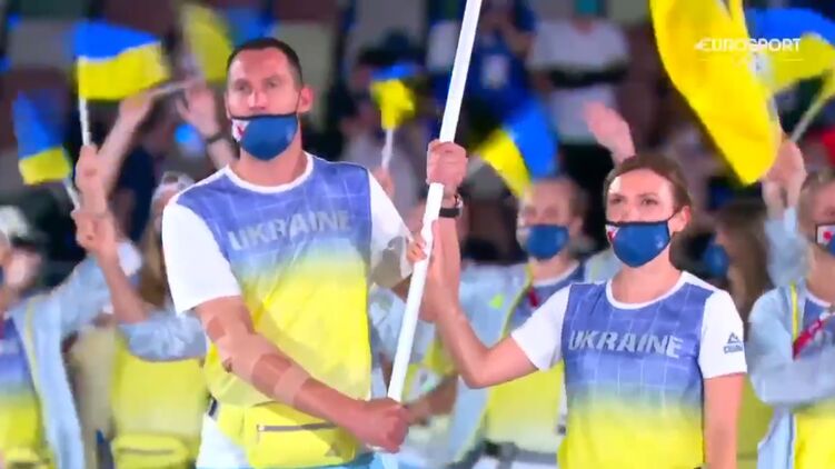 Во время торжественной церемонии открытия Игр ХХХІІ Олимпиады в Токио, которая проходит в пятницу, 23 июля, несмотря на массу антиковидных ограничений и коронавирусные рекорды в Японии, украинские знаменосцы вышли на арену с масками спущенными под нос.