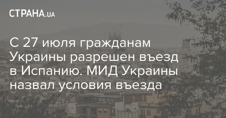 С 27 июля гражданам Украины разрешен въезд в Испанию. МИД Украины назвал условия въезда