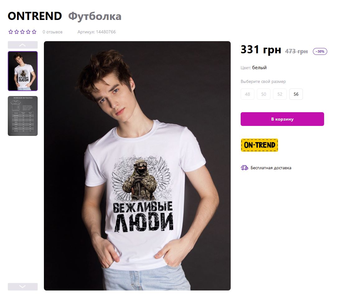 Но сразу попал в скандал: на сайте нашли футболки с символикой России, портретами Путина верхом на медведе и "вежливых людей".