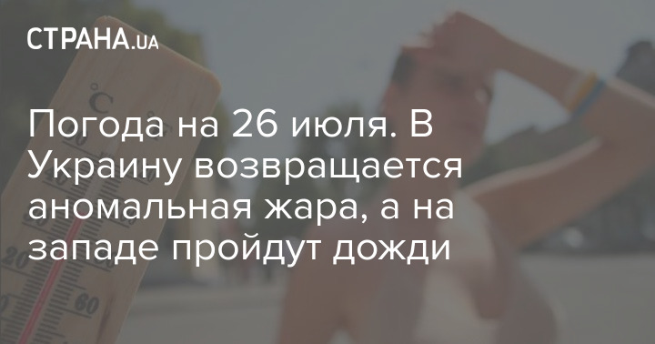 В Украине сегодня, 26 июля ожидается преимущественно солнечная и жаркая погода, а в западных областях страны возможен дождь. Воздух в южных и восточных областях прогреется до +30°...+32°.