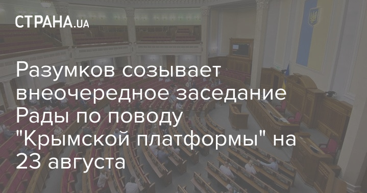 Спикер парламента Дмитрий Разумков планирует созвать внеочередное заседание Верховной Рады по поводу "крымской платформы" на 23 августа.