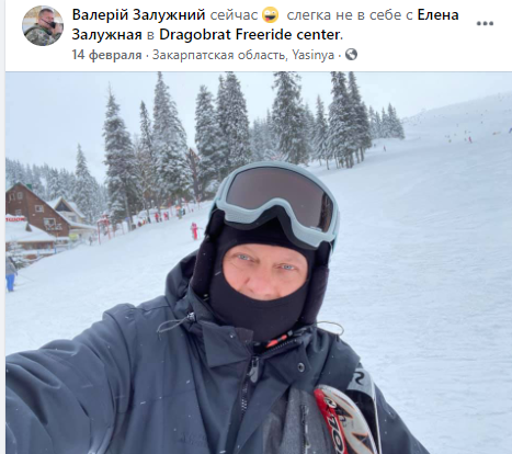 Вообще, судя по фото, в жизни военного находится место и празднику, и отдыху. На день влюбленных он и супруга покатались на Драгобрате.