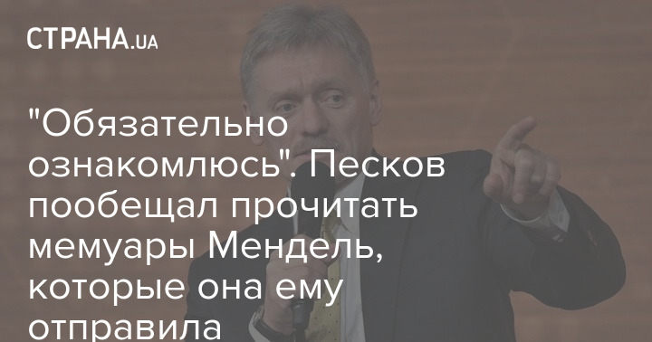 Пресс-секретарь президента России Дмитрий Песков отреагировал на новость о том, что бывшая пресс-секретарь Владимира Зеленского Юлия Мендель отправит ему свою книгу мемуаров "Каждый из нас президент". Песков заявил, что обязательно проштудирует произведение украинской экс-коллеги, когда получит его по почте.