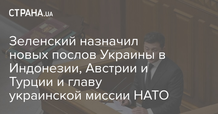 Президент Украины Владимир Зеленский назначил новых послов Украины в Турции, Республике Индонезия, Республике Австрия и Объединенной Республике Танзания и главу украинской миссии при НАТО. Оба соответствующих указа датированы 30 июлем и опубликованы на сайте главы государства.