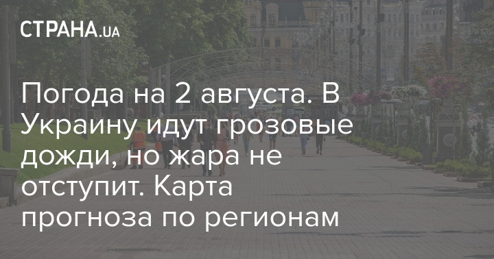 В понедельник, 2 августа, в большинстве регионов Украины пройдут грозовые дожди, при этом температура воздуха будет оставаться довольно высокой - местами (в частности на востоке) столбики термометров поднимутся до +36 градусов.