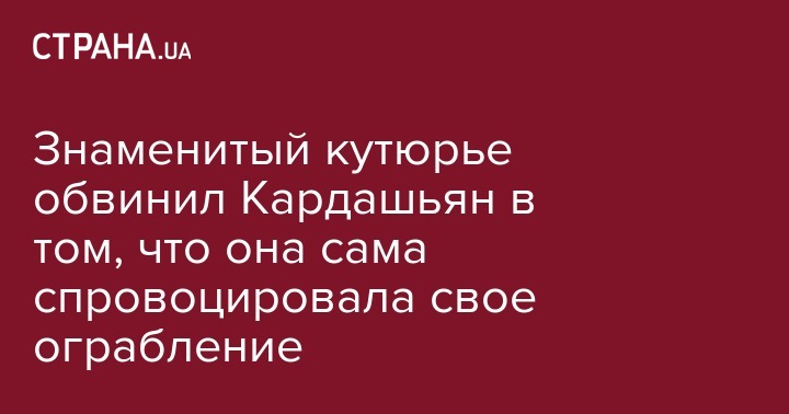 Знаменитый кутюрье обвинил Кардашьян в том, что она сама спровоцировала свое ограбление