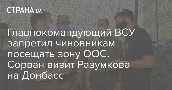Главнокомандующий ВСУ запретил чиновникам посещать зону ООС. Сорван визит Разумкова на Донбасс