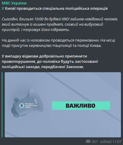 В Киеве полиция начала спецоперацию и ведет переговоры с захватчиком Кабмина