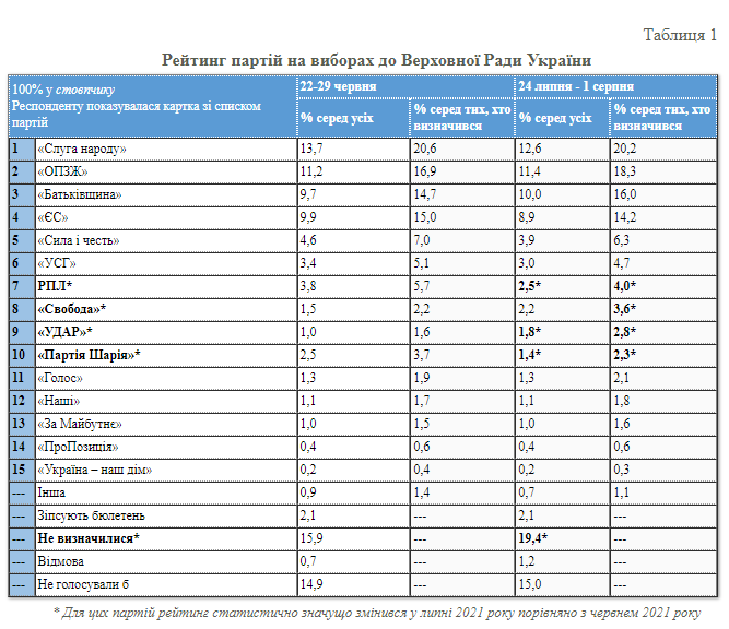 Опубликован новый рейтинг партий. Между ОПЗЖ и "слугами" разница в статистическую погрешность