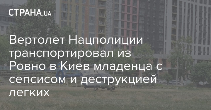 Вертолет Национальной полиции доставил из Ровенской области в Киев шестимесячного мальчика с сепсисом и двусторонней бактериальной деструкцией легких. Маленького пациента будут лечить в Охматдете специалисты по респираторной поддержки и лечения иммунодефицитов. В Минздраве напомнили о том, что в Украине уже работает проект аэромедицинской эвакуации.