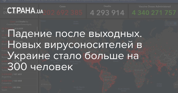 А тем временем университет Джона Хопкинса, который мониторит ситуацию на Земле в режиме нон-стоп привел свежие данные на утро 9 августа 2021 года. Итак, с момента начала пандемии на Земле коронавирусом заразились уже 202 692 385 человек, мартиролог на этот час таков - 4 293 914 человек.