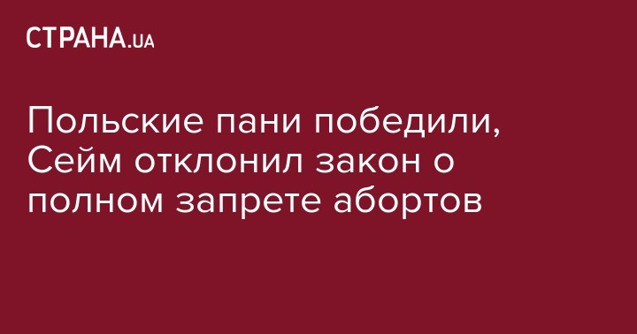 Ранее также Комиссия Сейма Польши по вопросам юстиции и правосудия проголосовала за отклонение законопроекта о полном запрете абортов и введение криминальной ответственности.