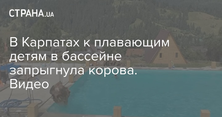 На базе отдыха в Карпатах произошел курьезный случай. Пока двое детей плавали в бассейне, посреди солнечного дня к ним запрыгнула корова.