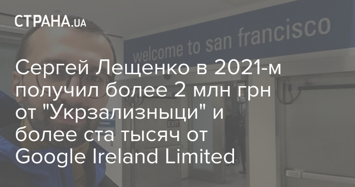 Экс-журналист, бывший народный депутат, член наблюдательного совета "Укрзализныци" Сергей Лещенко с начала года задекларировал 2,82  гривень гонорара. Из них 145 726 гривен он получил от компании Google Ireland Limited.