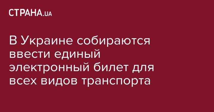 Министерство инфраструктуры планирует ввести единый электронный билет для всех видов общественного транспорта, в том числе железнодорожного. Об этом сообщает УНН.