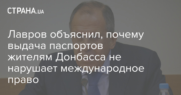 Министр иностранных дел Росси Сергей Лавров, считает, что выдача российских паспортов жителям "ДНР" и "ЛНР", (полмиллиона из которых получили российские документы - Ред.), не нарушает международное право.