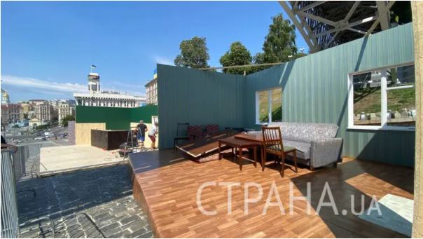 В центре Киева поставили декорации, которые показывают интерьер типовой советской квартиры. А также автоматы с газировкой времен СССР и детскую машинку.