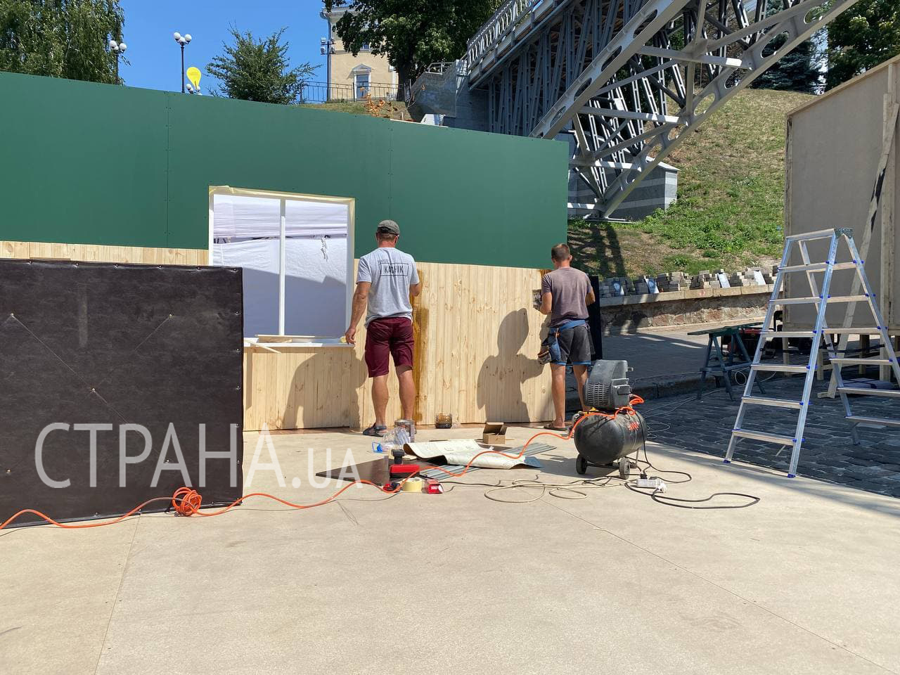 Как рассказал пресс-секретарь Владимира Зеленского Сергей Никифоров, задумка была в том, чтобы показать разные исторические периоды Украины до обретения независимости. Павильоны планировали использовать только для съемок, а после 24 августа - снести.