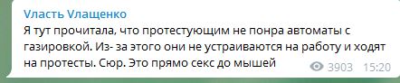 "Я тут прочитала, что протестующим не понравились автоматы с газировкой. Из- за этого они не устраиваются на работу и ходят на протесты. Сюр. Это прямо секс до мышей" - написала журналист Наталья Влащенко.