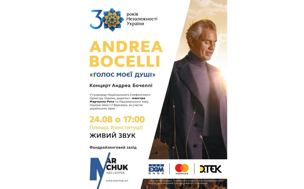 Концерт Бочелли заявлен как "фандрайзинговое" мероприятие. То есть присутствие на концерте предполагает сбор добровольных пожертвований украинцев.