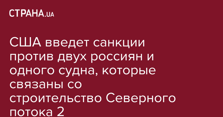 Власти Соединенных Штатов Америки планируют ввести ограничительные меры по отношению к судну и двум физлицам, которые связаны со строительством "Северного потока 2".