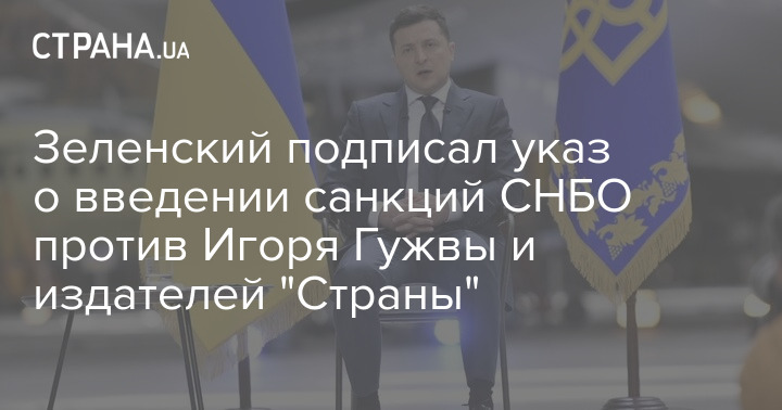 Зеленский указом  №376/2021 от 20 августа ввел в действие санкции, который СНБО утвердил на вчерашнем заседании против главного редактора "Страны" Игоря Гужвы, а также директора предприятия Любови Лукашиной и ООО "Ласмак" и ООО "Маджери" (компании-издатели "Страны").