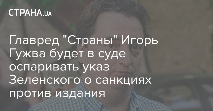 Главный редактор сайта "Страна.ua" Игорь Гужва заявил, что со следующей недели начнется работа по оспариванию в суде указа президента Владимира Зеленского о введении санкций СНБО против него и издателей "Страны".