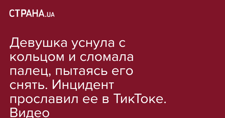Девушка не сняла перед сном кольцо с большого пальца руки и на следующий день кольцо не смогли снять даже врачи, его пришлось распиливать, а палец оказался сломан. Однако у инцидента были и положительные последствия - пострадавшая рассказала о произошедшем в ТикТоке и прославилась в соцсети, видео набрало 4,5 миллиона просмотров и сотни тысяч лайков.