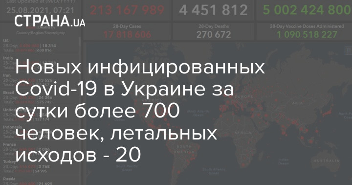 А на планете отмечено (25 августа, 08.15 по Киеву - Ред.) по последним данным университета Дж. Хопкинса уже 213 167 989 зараженных. Умерло от коронавируса - 4 451 812 человек. В тройке лидеров три страны - США, Индия и Бразилия.